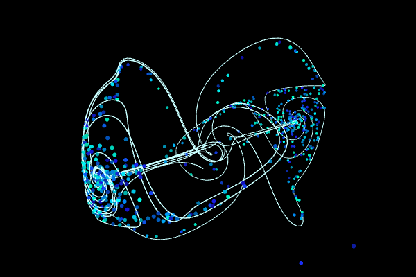 The term ‘Strange Attractor’ is used to describe an attractor (a region or shape to which points are ‘pulled’ as the result of a certain process) that displays sensitive dependence on initial conditions (that is, points which are initially close on the attractor become exponentially separated with time). The most famous strange attractor is undoubtedly the Lorenz attractor - a three dimensional object whose body plan resembles a butterfly or a mask. The Lorenz attractor, named for its discoverer Edward N. Lorenz, arose from a mathematical model of the atmosphere [5].